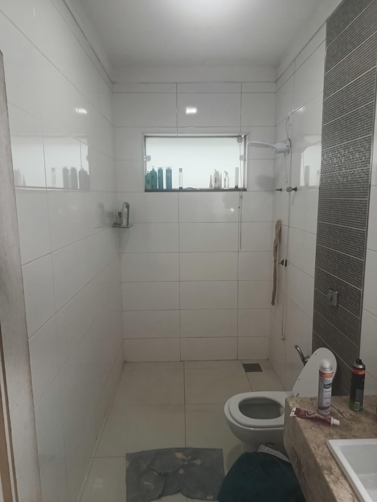 Casa com 2 andares, 1 lavabo, 1 suite master, 2 mais dois banheiros sociais, sala ampla no primeiro andar, cozinha, e 2 quartos no primeiro andar, uma sala grande e a suíte no segundo com closet, fundos com varanda e cozinha e lavanderia.